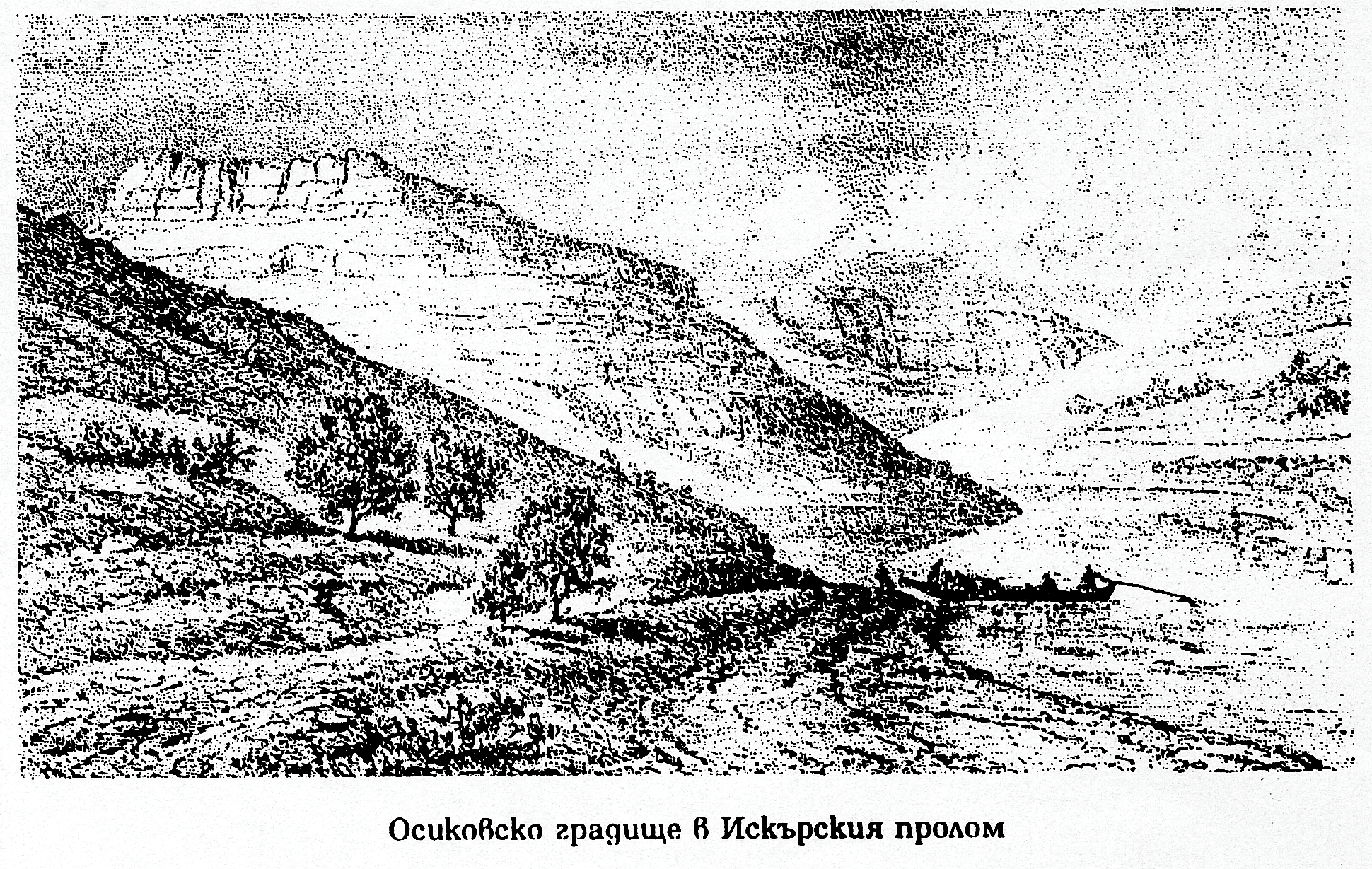 ГРАДИЩЕТО (ОСИКОВСКО ГРАДИЩЕ) 1. ДУНАВСКА БЪЛГАРИЯ И БАЛКАНЪТ. ФЕЛИКС КАНИЦ – ИЗВАДКА 2. Скица направена от Феликс Каниц при преминаването на река Искър при местност “Пребойница” 3. Залесяване на “Градището” след 1945 г. 4.